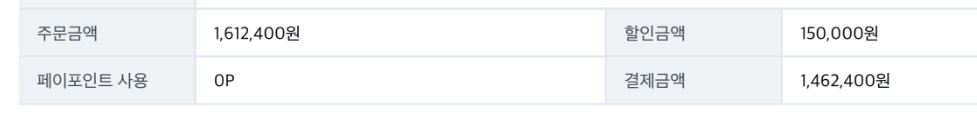 그래서 총 4장의 항공권 결제 가격은 ((403,100*4) - 150,000) 로 1,462,400원으로 티켓 한장당 365,600으로 구매했다.