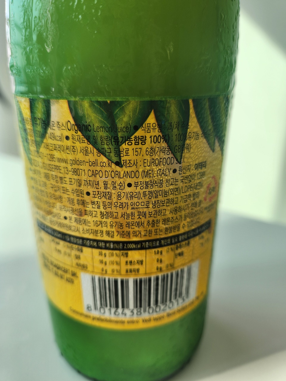 다만 요건 스페인산 레몬이고 껍질까지 착즙은 했지만 유기농이라는 표기는 없다. 또한 보존을 위하여 아주 소량의 산화방지제가 첨가되어있다고 써있다. 0.03%...