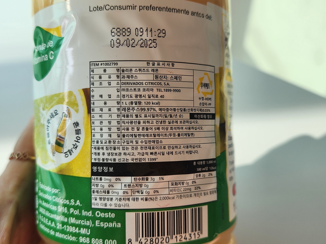 코스트코에서 파는 solimon 솔리몬 레몬즙 - 1리터 * 2개에 8천원선.