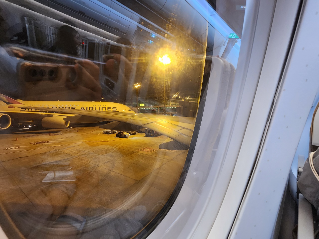 비행기 탑승하고 나니 옆에 싱가포르 항공 비행기가 보이네 .
