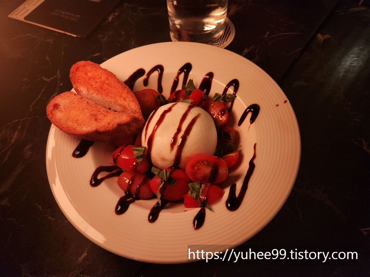 거하지 않게 burrata salad . 퐁신퐁신한 치즈와 야채가 상콤하게 한잔하고 입가심되는 안주.