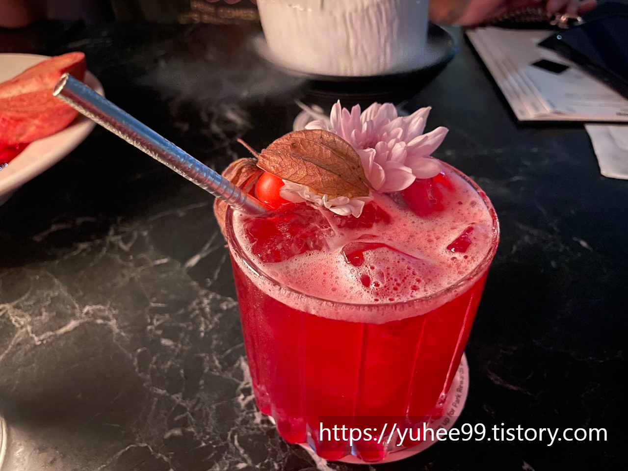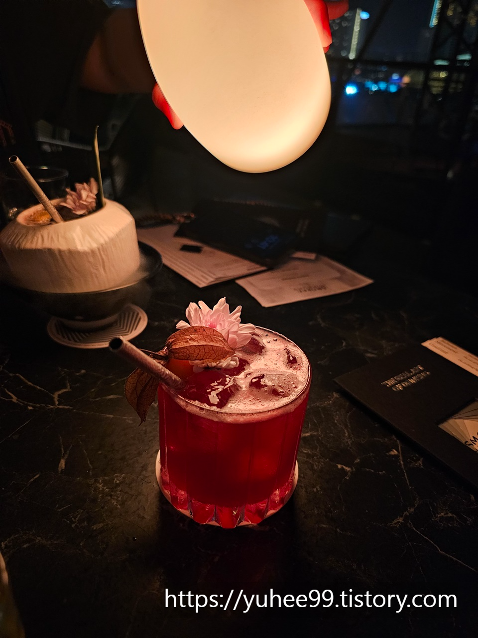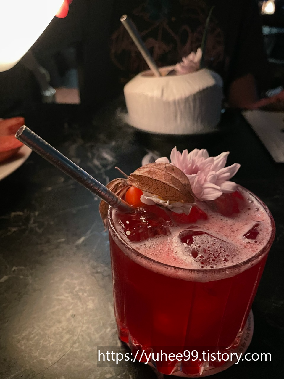 칵테일이 참 예쁘고 달달~~하니 맛있다. 저 코코넛 껍질에 있는 건 드라이 아이스에 담겨있어서 아이스 연기 쇼까지 해주는~~~