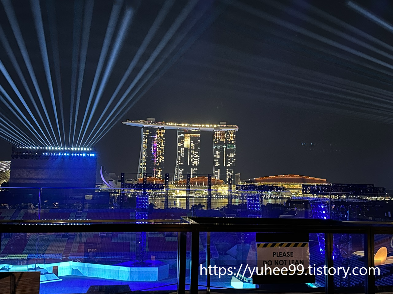 이때 싱가포르 행사기간이라 그 앞에 공원에 전광판이랑 임시 구조물을 막 세워두었던 것이 시야를 막고있다................