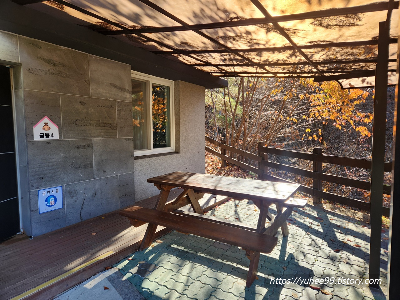 우리가 간 시기에는 겨울철 산불 조심기간이라 바베큐 금지였고 다만 버너는 가능하니 가스버너로 야외에서 고기구워먹는 것은 가능~