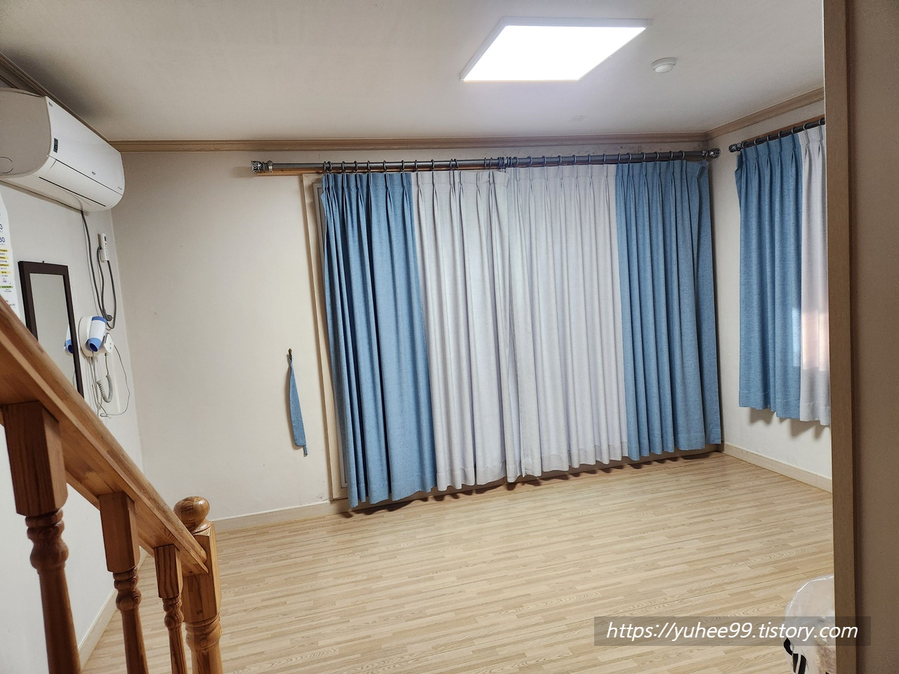 전 숙박객이 2층을 엄청 달궈놔서 그런지 2층이 너무 더운 상태라 2층의 창문 살짝 열고 환기도 좀 시키고 2층 난방은 적당히 돌리니 2층에서 정말 숙면을 잘 한듯하다.