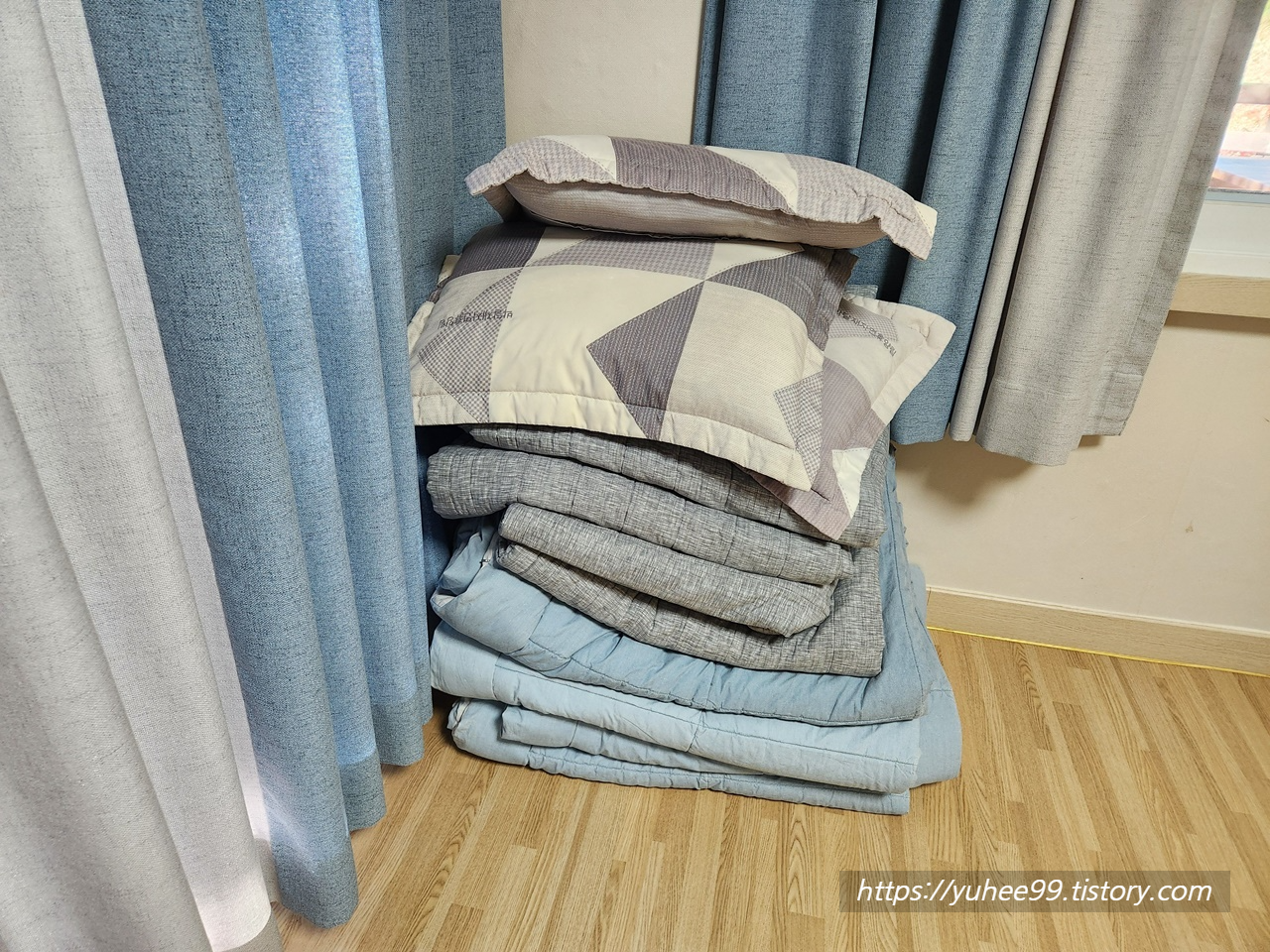 까는 이불이 여름 홑이불 두께라서 엄청 배겨서...ㅠㅠ 다행히 난 4인실이라서 덮는 이불도 4개라 한개가 남아 덮는 이불도 반 접어서 바닥에 같이 깔고 다른 2명은 까는 이불 한장을 가로로 해서 허리 부분에 그나마 한겹 더 깔고 자보기도... 그래도 배기는 부분은 어쩔 수 없지만, 대신 뜨끈한 방바닥의 열기는 그대로 올라와서 완전 따땃하게 저녁을 보냈다.