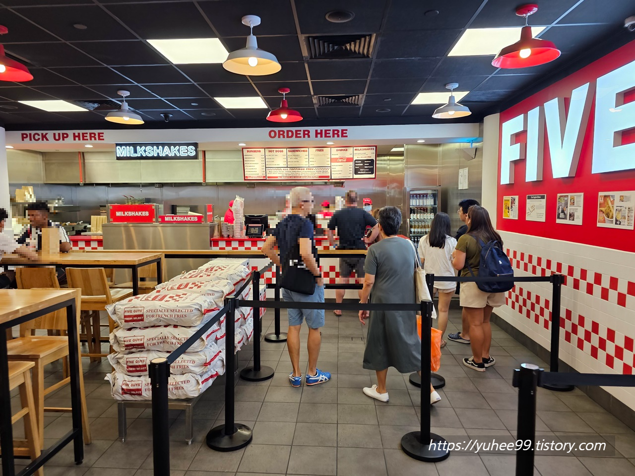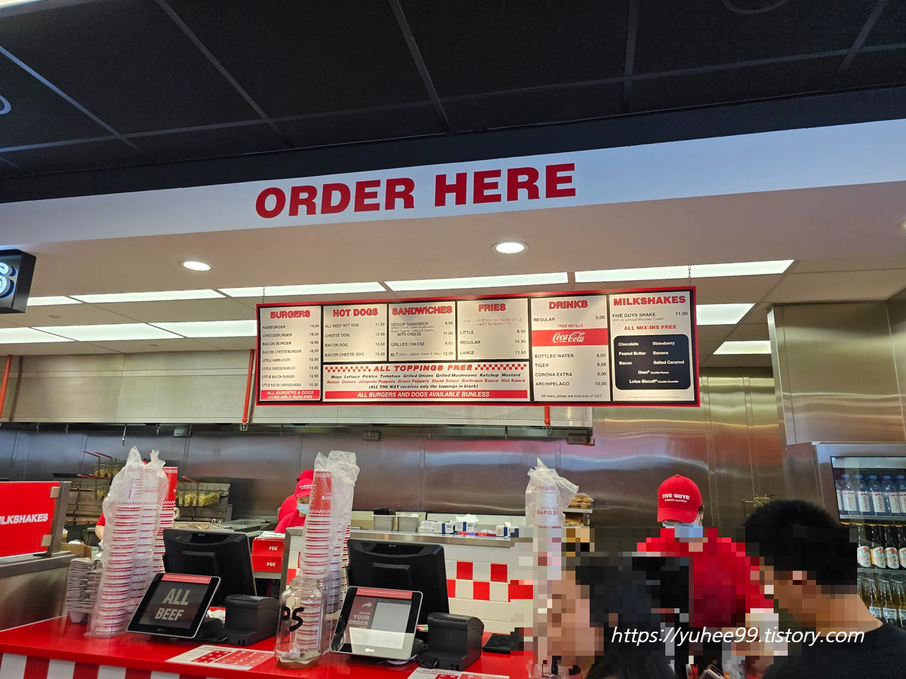 미국의 3대 버거 중에 하나인 five guys 파이브가이즈. 한국에서는 런칭 직후라 어렵게 줄서서 먹어야할 때, 싱가포르에도 있다하여 먼저 이곳에서 먹어보려했다. 한국에선 먹기 넘나 힘들어 ㅜㅜ
