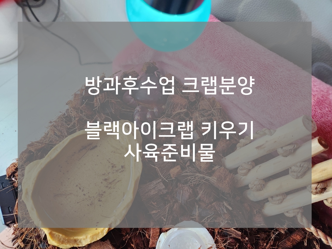 벌써 우리집에 온지 한달이 된 블랙아이크랩, 이제서야 첫 사육일기, 블랙아이크랩 키우기 사육 준비물을 정리해보았어요. 꼭 크랩키우기 세트가 아니더라고 하나씩 셋팅하는게 더 나을 수도 있겠다는 생각이 듭니다. 전 급한 마음에 블랙아이크랩키우기세트 왕대사육장 세트를 주문하고 추가로도 막 사모아서 뭔가 뒤죽박죽인 느낌인데 좀 잘 키워보게싸하면 하나씩 골라 담고, 그냥 일단 편하게 시작할래 하면 블랙아이크랩 키우기세트 왕대사이즈로 시작하는 걸 추천드립니다.