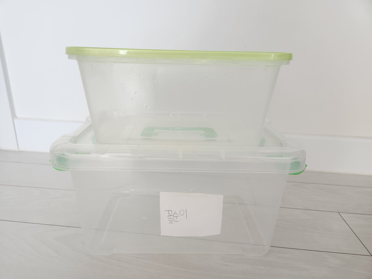 학교에서 가져오는 반찬통은 15*7cm정도 되는 작은 통이라 거의 크랩의 1/3 사이즈밖에 되지 않아요. 그래서 미리 사육통은 꼭! 준비해야해요. 전 불시에 데려와서 아무것도 없는 상태라 일단 집에 있는 투명 통을 뒤적뒤적.