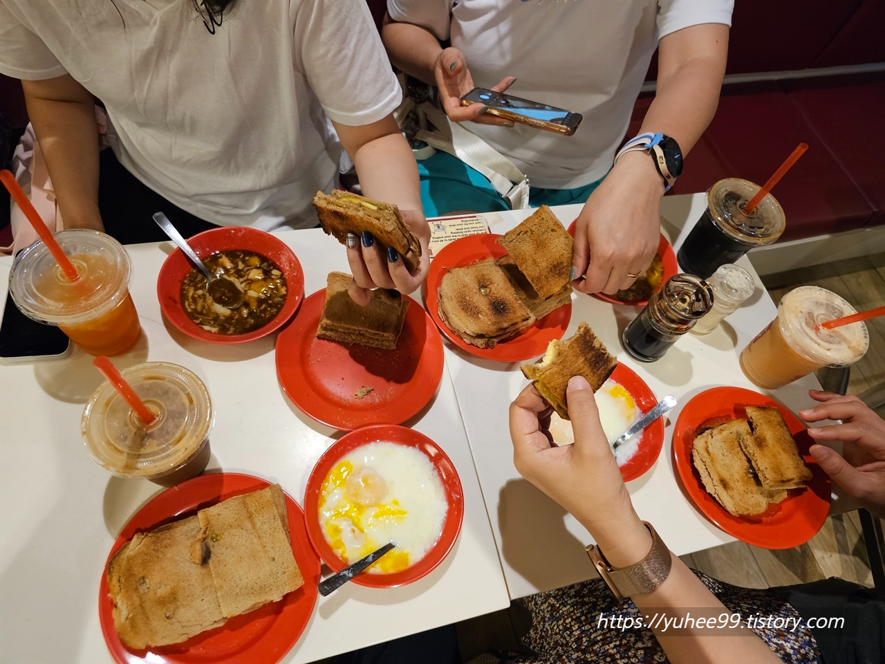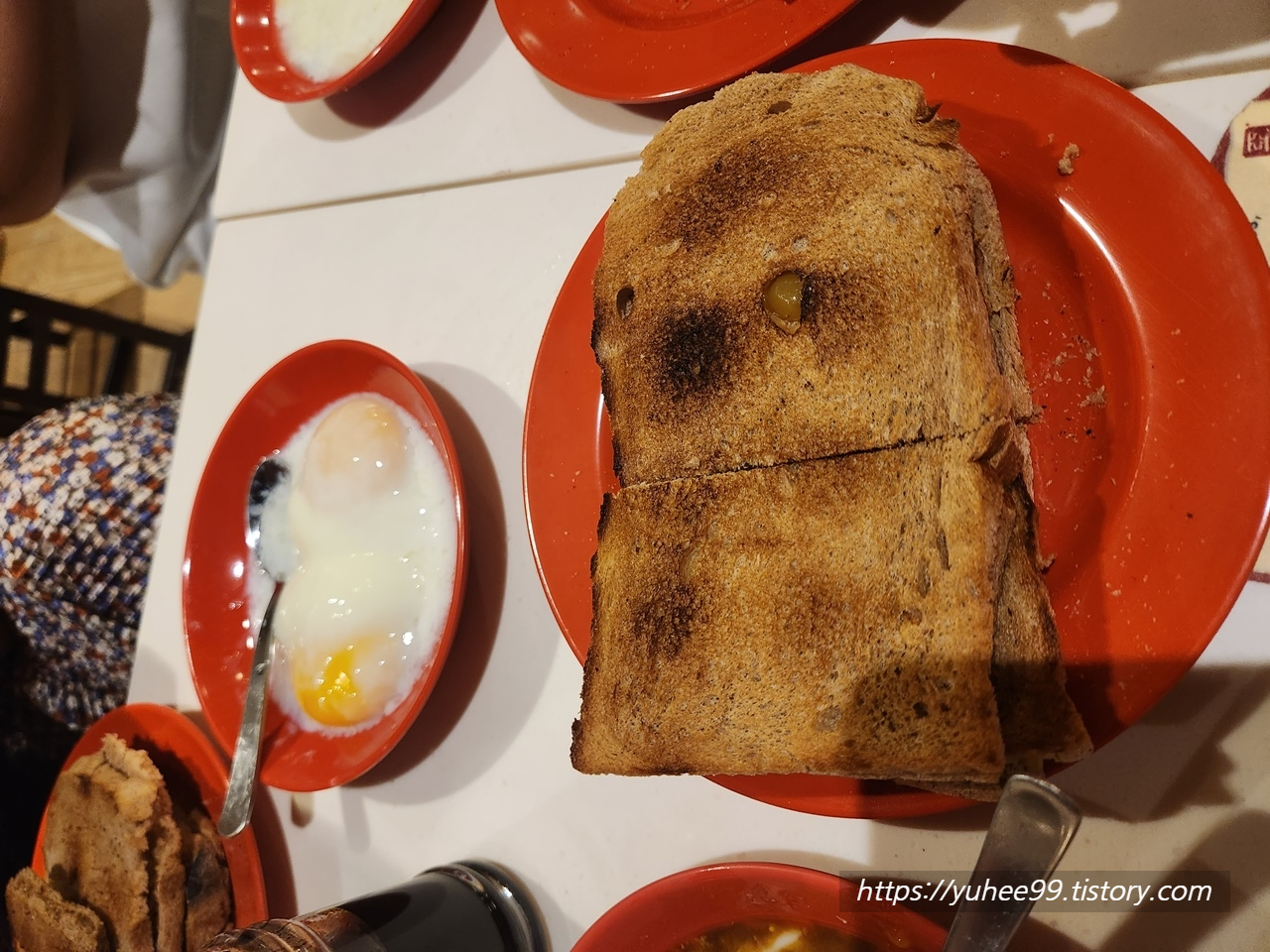 각자 취향대로 커피와 음료를 시키고 먹기 바쁜 우리~ 계란과 함께 넉넉한 Yakun Kaya Toast 야쿤 카야토스로 아침을 잘 해결했다.