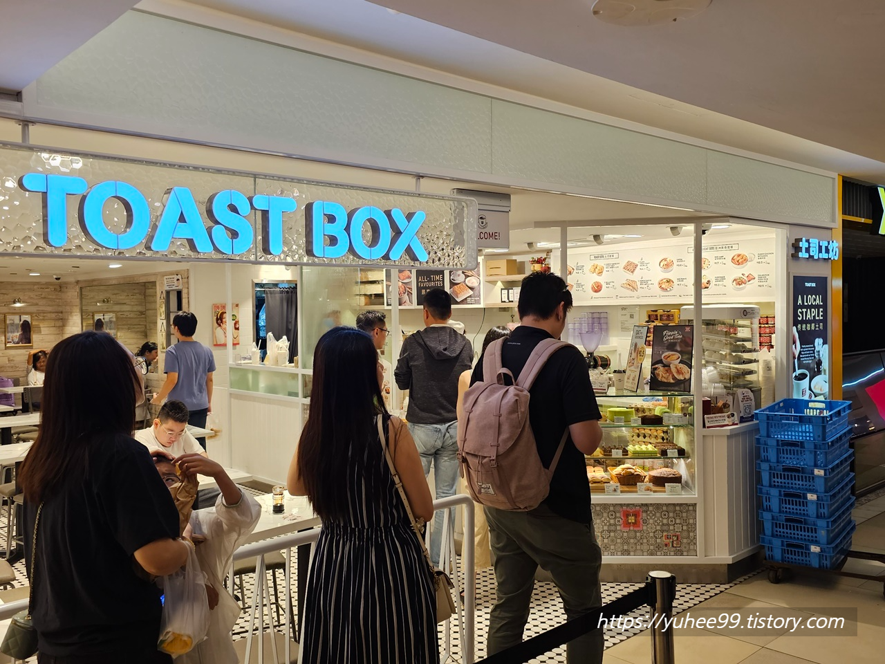 싱가포르 도착하여 바로 자고 일어나서 처음 먹은 첫끼! 호텔 그랜드 퍼시픽 에서 도보로 10여분 걸어서 레플스 시티 쇼핑몰지하에 있는 토스트박스에서 카야토스트로 첫끼를 시작하였다. 다 움직이기 보다는 가볍게 토스트 포장해서 호텔방에서 먹기로 하고 포장하러 왔다. 근데 오... 벌써 사람들이 줄 서 있는! 그만큼 아침에도 현재인들이 자주 찾는 곳이다. 기다리면서 주문할 토스트를 살펴보기로 했다.
